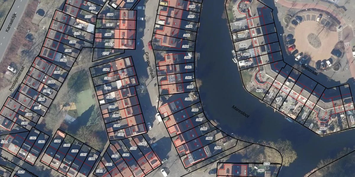 Gebruik de zoekbalk of klik op een perceel voor informatie over de adressen binnen dit perceel.
