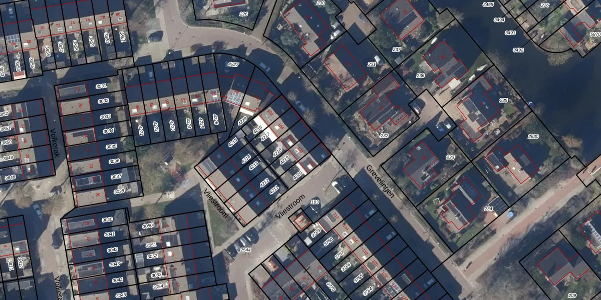 Gebruik de zoekbalk of klik op een perceel voor informatie over de adressen binnen dit perceel.