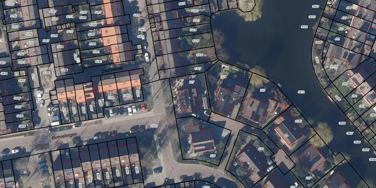 Gebruik de zoekbalk of klik op een perceel voor informatie over de adressen binnen dit perceel.