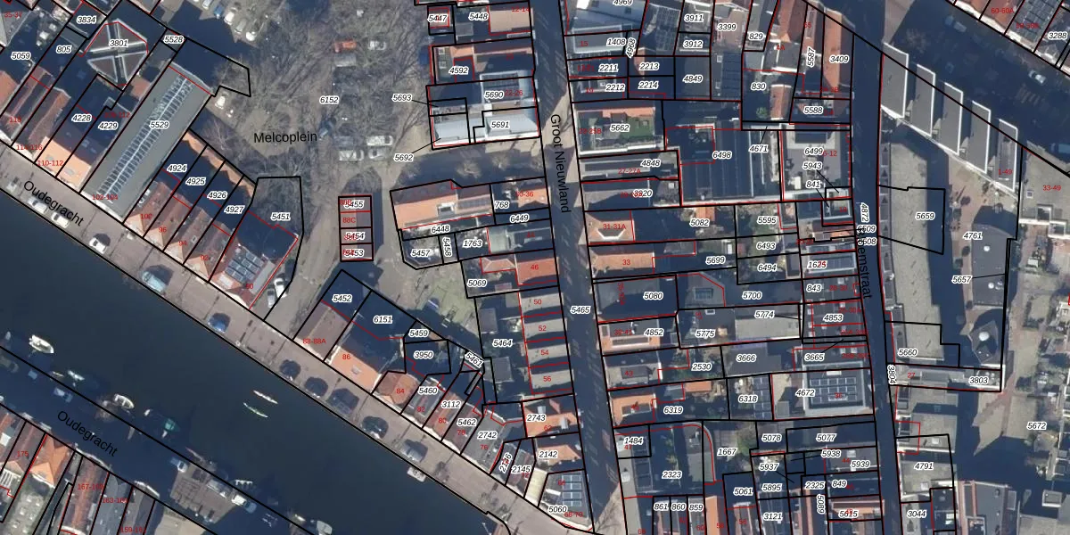 Gebruik de zoekbalk of klik op een perceel voor informatie over de adressen binnen dit perceel.