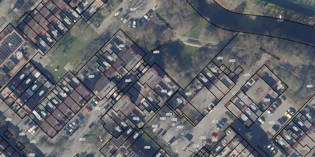 Het perceel waarop Grutterij 24 staat heeft een oppervlakte van 339 m². Dit is een groot perceel. De perceeloppervlakte wordt geregistreerd door het Kadaster. Gedetailleerde informatie over de maten van dit perceel kunt u vinden in het rapport Kadastrale kaart met maatvoering van Grutterij 24.