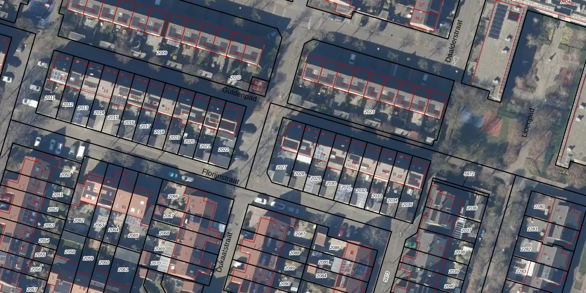 Gebruik de zoekbalk of klik op een perceel voor informatie over de adressen binnen dit perceel.