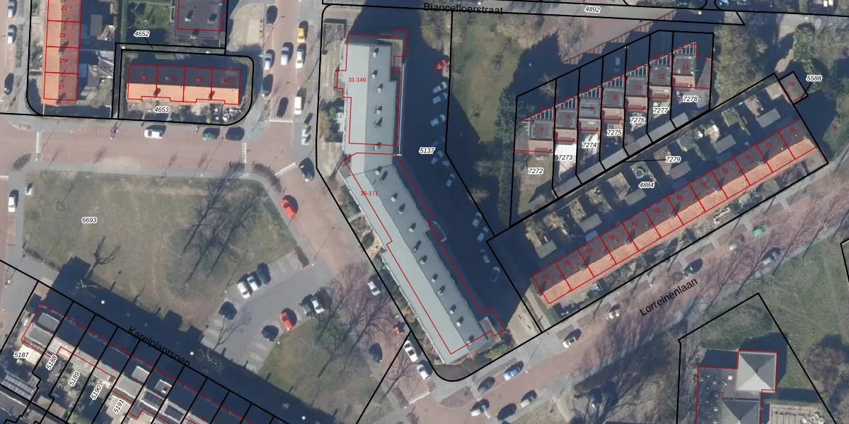 Het perceel waarop Hadewijchstraat 157 staat heeft een oppervlakte van 2562 m². Dit is een zeer groot perceel. De perceeloppervlakte wordt geregistreerd door het Kadaster. Gedetailleerde informatie over de maten van dit perceel kunt u vinden in het rapport Kadastrale kaart met maatvoering van Hadewijchstraat 157.