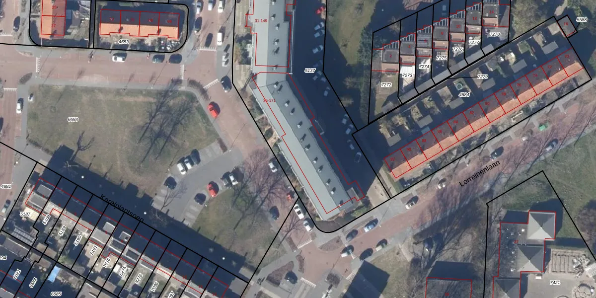 Het perceel waarop Hadewijchstraat 59 staat heeft een oppervlakte van 2562 m². Dit is een zeer groot perceel. De perceeloppervlakte wordt geregistreerd door het Kadaster. Gedetailleerde informatie over de maten van dit perceel kunt u vinden in het rapport Kadastrale kaart met maatvoering van Hadewijchstraat 59.