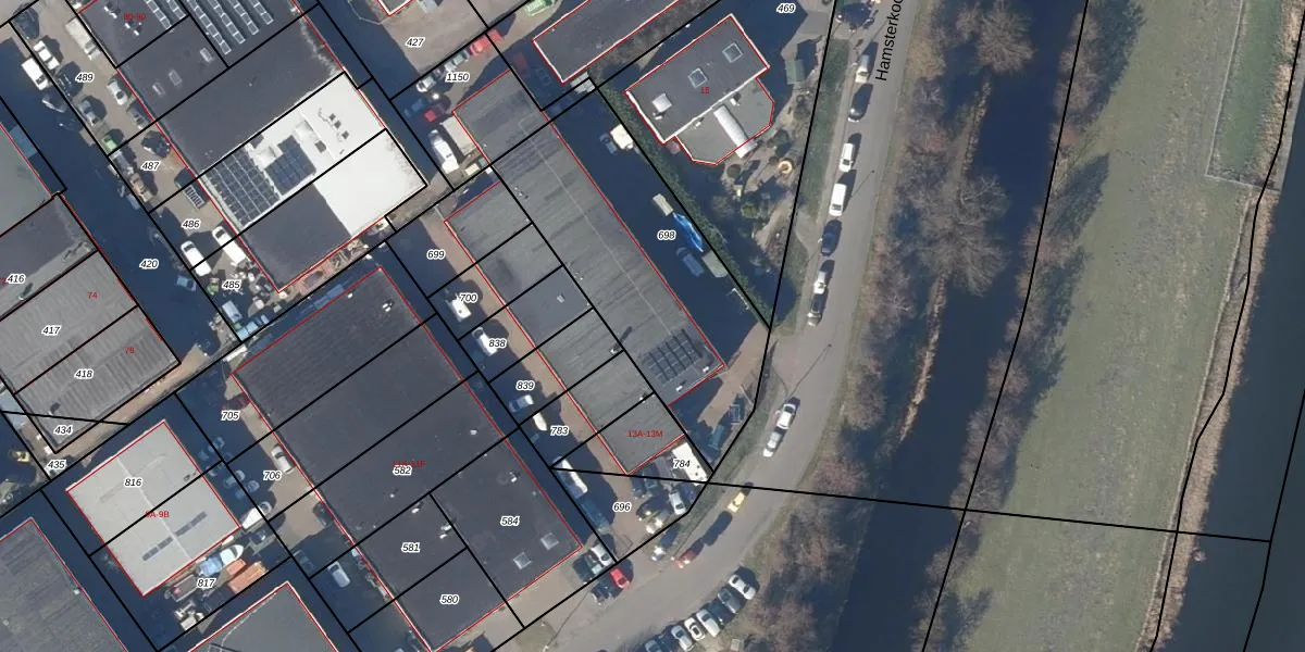 Hamsterkoog 13-H is gelegen op kadastraal perceel AMR01M698. Deze kadastrale aanduiding is uniek en wordt gebruikt door het Kadaster om eigendomsrechten en andere zakelijke rechten vast te leggen. Het perceel maakt onderdeel uit van de kadastrale gemeente Alkmaar.