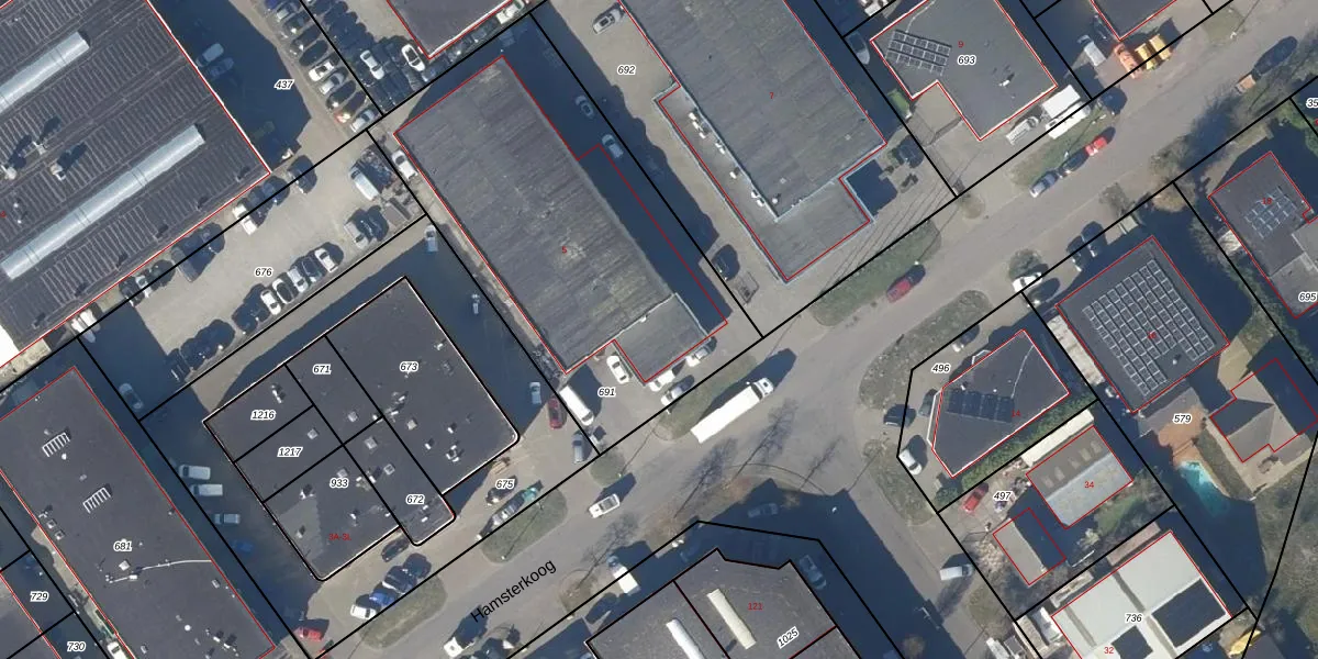 Hamsterkoog 5 is gelegen op kadastraal perceel AMR01M691. Deze kadastrale aanduiding is uniek en wordt gebruikt door het Kadaster om eigendomsrechten en andere zakelijke rechten vast te leggen. Het perceel maakt onderdeel uit van de kadastrale gemeente Alkmaar.