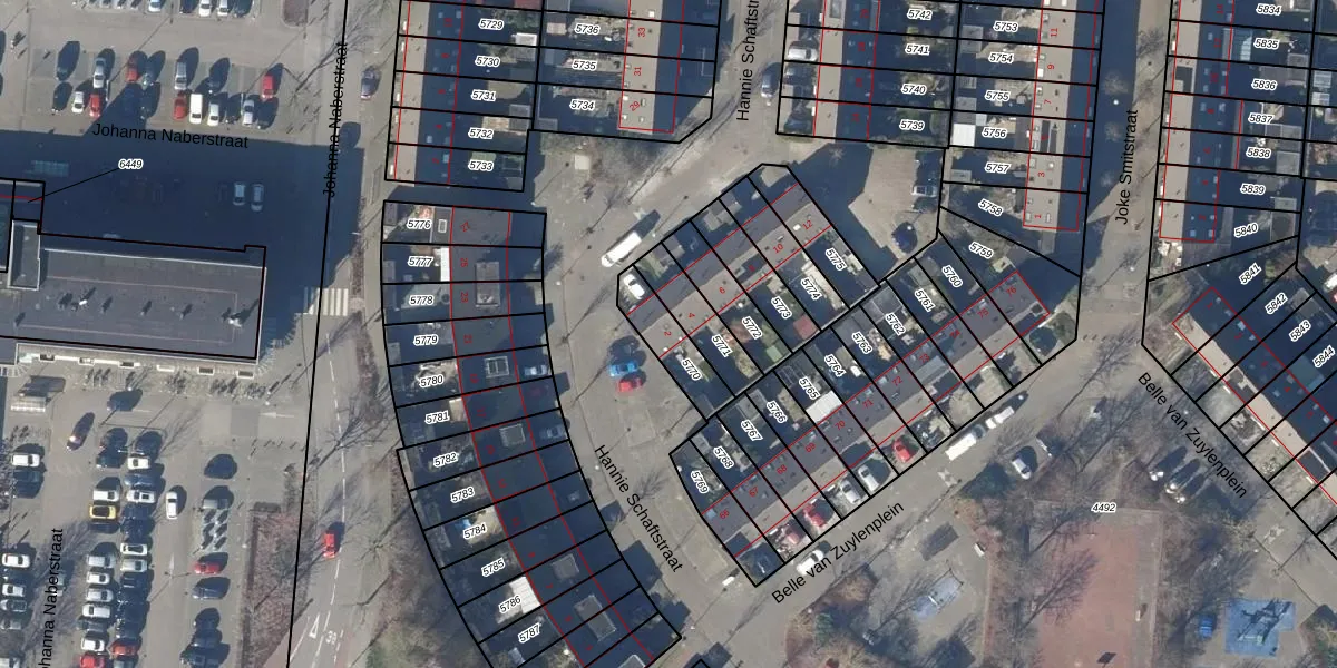 Gebruik de zoekbalk of klik op een perceel voor informatie over de adressen binnen dit perceel.
