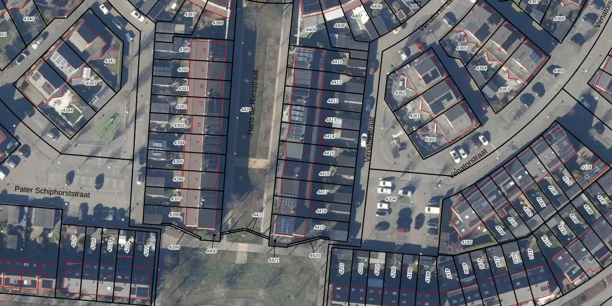 Hans de Riesstraat 10 is gelegen op kadastraal perceel AMR01I4415. Deze kadastrale aanduiding is uniek en wordt gebruikt door het Kadaster om eigendomsrechten en andere zakelijke rechten vast te leggen. Het perceel maakt onderdeel uit van de kadastrale gemeente Alkmaar.