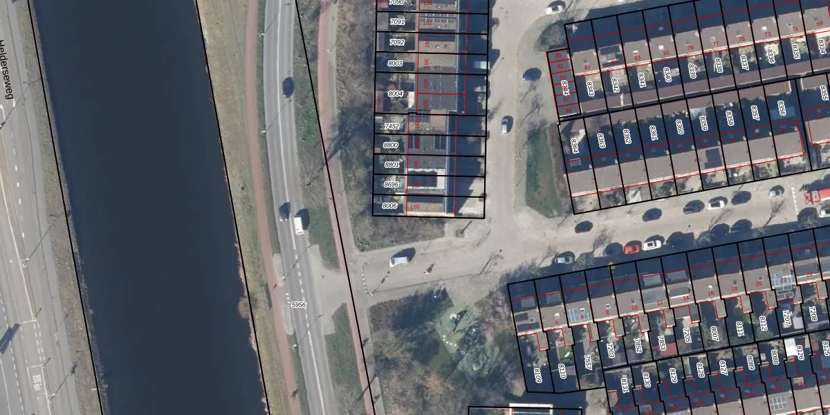 Gebruik de zoekbalk of klik op een perceel voor informatie over de adressen binnen dit perceel.