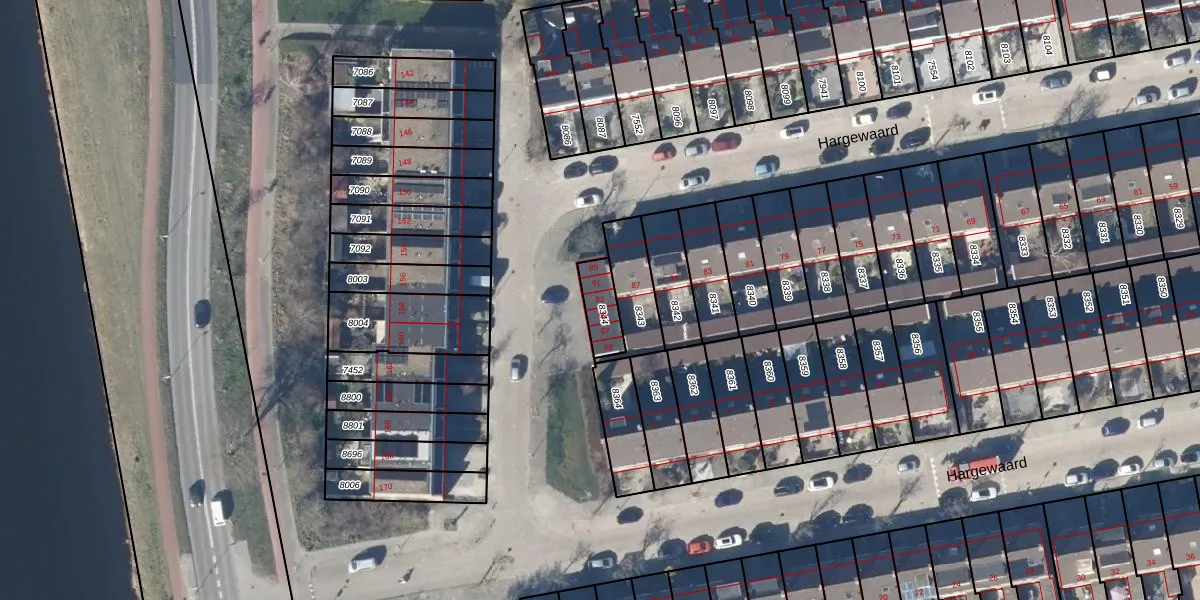 Het perceel waarop Hargewaard 93 staat heeft een oppervlakte van 87 m². Dit is een klein perceel. De perceeloppervlakte wordt geregistreerd door het Kadaster. Gedetailleerde informatie over de maten van dit perceel kunt u vinden in het rapport Kadastrale kaart met maatvoering van Hargewaard 93.