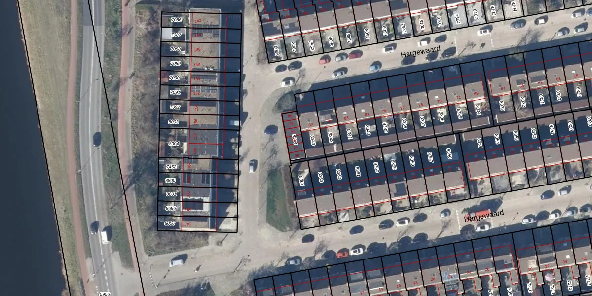 Het perceel waarop Hargewaard 97 staat heeft een oppervlakte van 87 m². Dit is een klein perceel. De perceeloppervlakte wordt geregistreerd door het Kadaster. Gedetailleerde informatie over de maten van dit perceel kunt u vinden in het rapport Kadastrale kaart met maatvoering van Hargewaard 97.