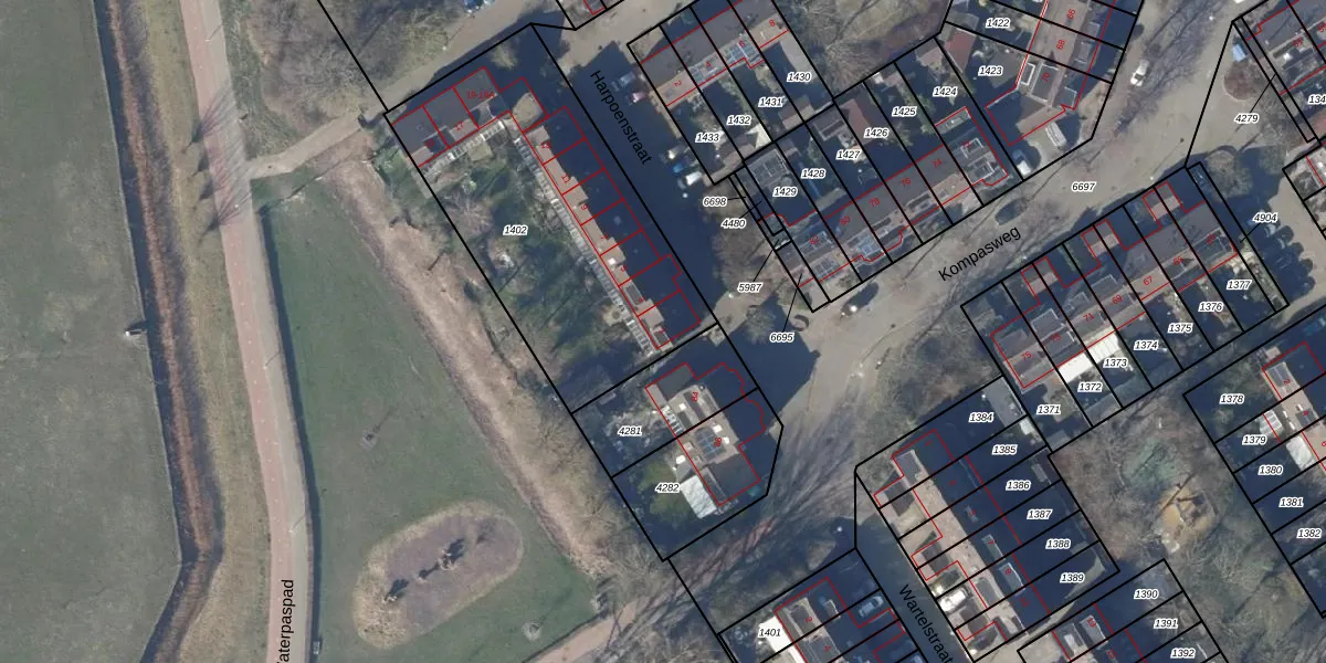 Het perceel waarop Harpoenstraat 1 staat heeft een oppervlakte van 1394 m². Dit is een zeer groot perceel. De perceeloppervlakte wordt geregistreerd door het Kadaster. Gedetailleerde informatie over de maten van dit perceel kunt u vinden in het rapport Kadastrale kaart met maatvoering van Harpoenstraat 1.