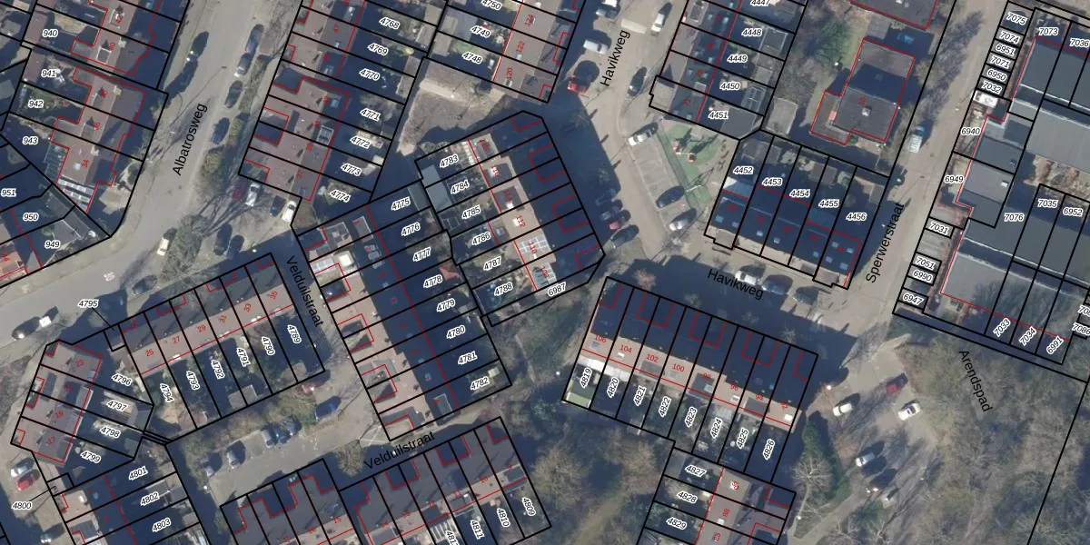 Gebruik de zoekbalk of klik op een perceel voor informatie over de adressen binnen dit perceel.