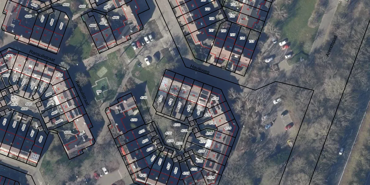 Gebruik de zoekbalk of klik op een perceel voor informatie over de adressen binnen dit perceel.