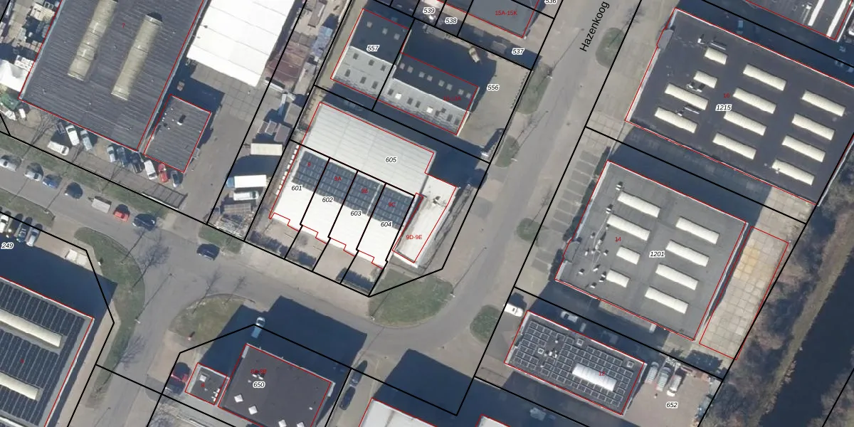 Hazenkoog 9-E is gelegen op kadastraal perceel AMR01M605. Deze kadastrale aanduiding is uniek en wordt gebruikt door het Kadaster om eigendomsrechten en andere zakelijke rechten vast te leggen. Het perceel maakt onderdeel uit van de kadastrale gemeente Alkmaar.