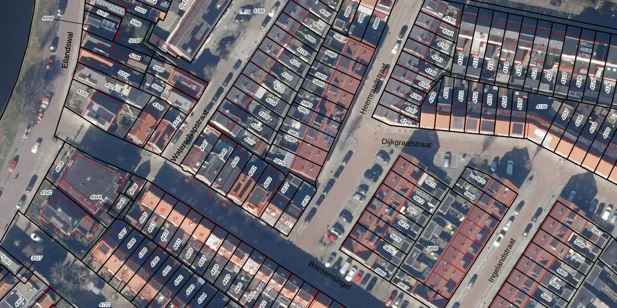 Gebruik de zoekbalk of klik op een perceel voor informatie over de adressen binnen dit perceel.