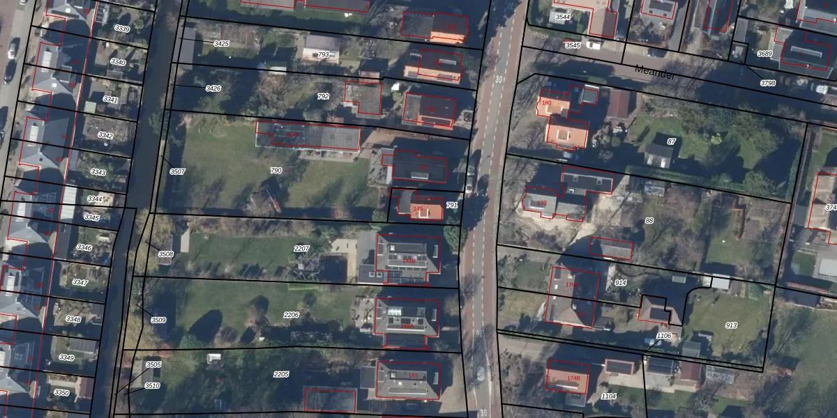 Gebruik de zoekbalk of klik op een perceel voor informatie over de adressen binnen dit perceel.