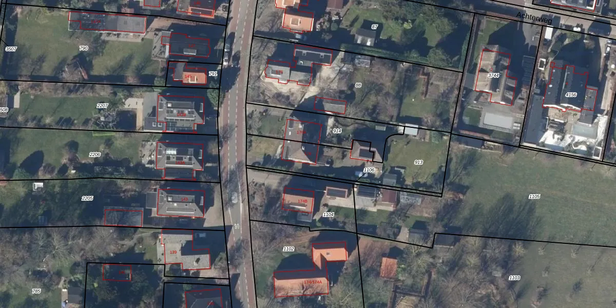 Het perceel waarop Herenweg 176 staat heeft een oppervlakte van 855 m². Dit is een groot perceel. De perceeloppervlakte wordt geregistreerd door het Kadaster. Gedetailleerde informatie over de maten van dit perceel kunt u vinden in het rapport Kadastrale kaart met maatvoering van Herenweg 176.
