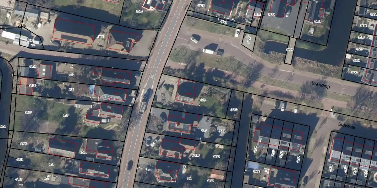 Gebruik de zoekbalk of klik op een perceel voor informatie over de adressen binnen dit perceel.