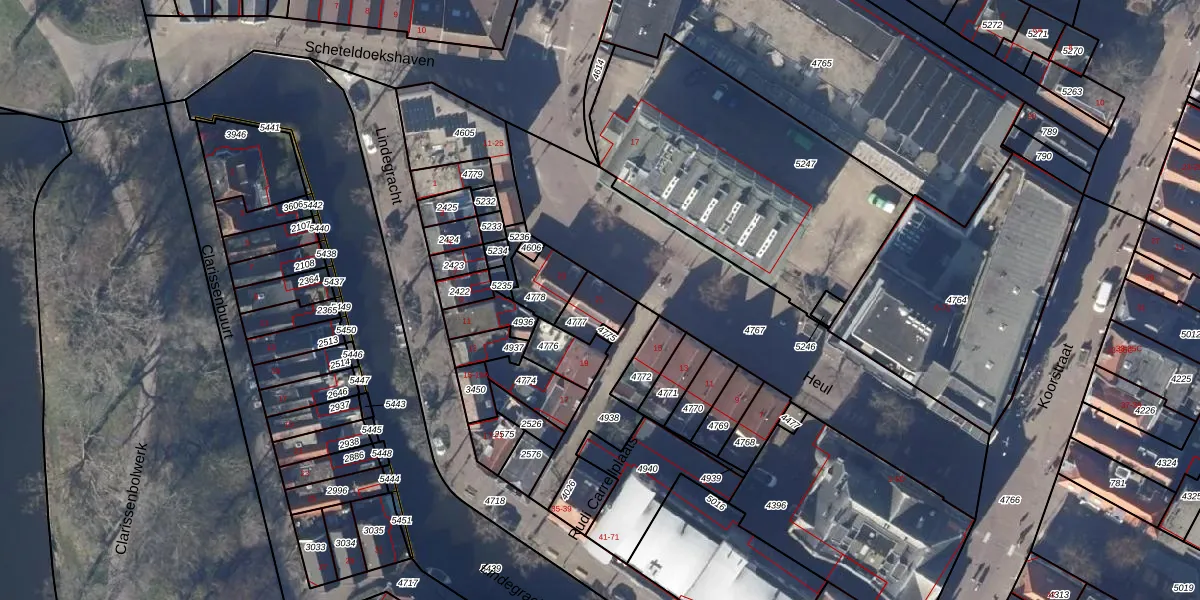 Het perceel waarop Heul 21 staat heeft een oppervlakte van 90 m². Dit is een klein perceel. De perceeloppervlakte wordt geregistreerd door het Kadaster. Gedetailleerde informatie over de maten van dit perceel kunt u vinden in het rapport Kadastrale kaart met maatvoering van Heul 21.