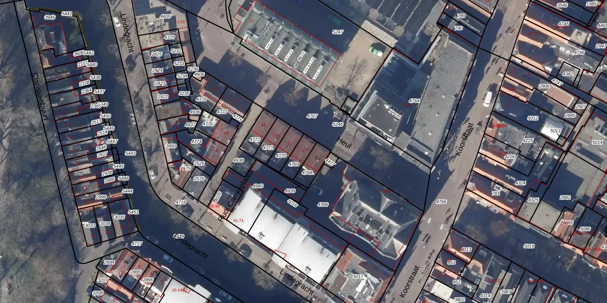 Het perceel waarop Heul 9 staat heeft een oppervlakte van 77 m². Dit is een klein perceel. De perceeloppervlakte wordt geregistreerd door het Kadaster. Gedetailleerde informatie over de maten van dit perceel kunt u vinden in het rapport Kadastrale kaart met maatvoering van Heul 9.