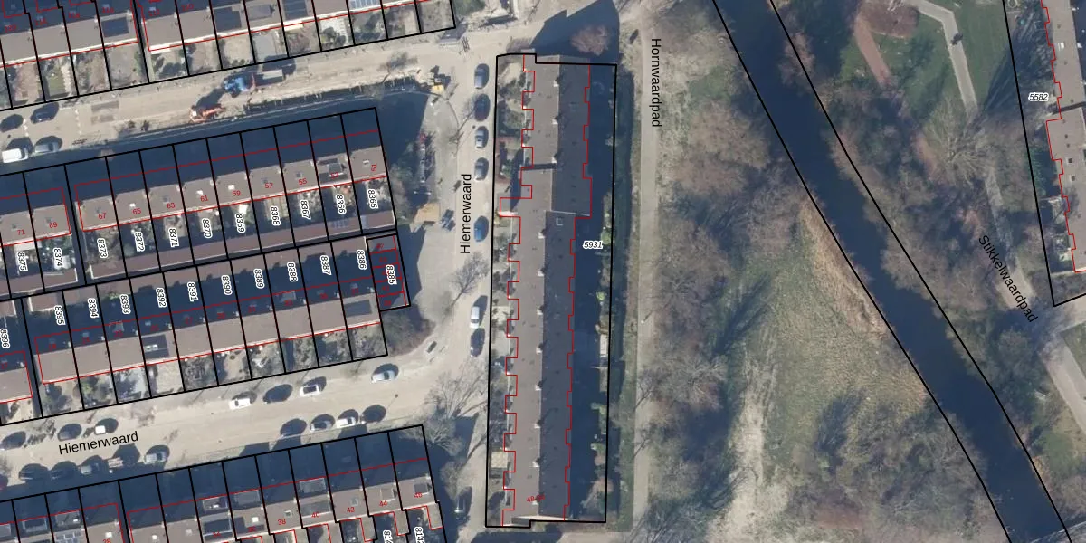 Het perceel waarop Hiemerwaard 60 staat heeft een oppervlakte van 1873 m². Dit is een zeer groot perceel. De perceeloppervlakte wordt geregistreerd door het Kadaster. Gedetailleerde informatie over de maten van dit perceel kunt u vinden in het rapport Kadastrale kaart met maatvoering van Hiemerwaard 60.