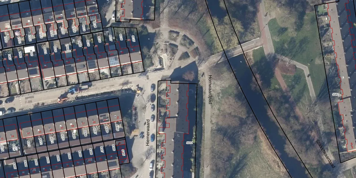 Het perceel waarop Hiemerwaard 70 staat heeft een oppervlakte van 1873 m². Dit is een zeer groot perceel. De perceeloppervlakte wordt geregistreerd door het Kadaster. Gedetailleerde informatie over de maten van dit perceel kunt u vinden in het rapport Kadastrale kaart met maatvoering van Hiemerwaard 70.