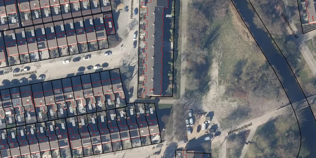 Het perceel waarop Hiemerwaard 74 staat heeft een oppervlakte van 1873 m². Dit is een zeer groot perceel. De perceeloppervlakte wordt geregistreerd door het Kadaster. Gedetailleerde informatie over de maten van dit perceel kunt u vinden in het rapport Kadastrale kaart met maatvoering van Hiemerwaard 74.