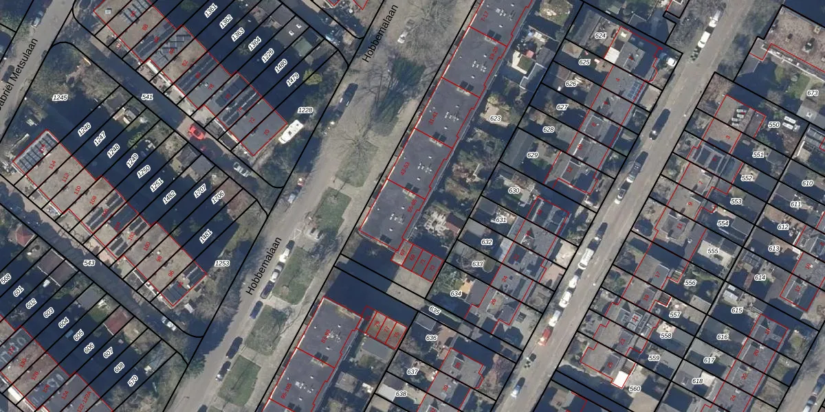 Het perceel waarop Hobbemalaan 55 staat heeft een oppervlakte van 1921 m². Dit is een zeer groot perceel. De perceeloppervlakte wordt geregistreerd door het Kadaster. Gedetailleerde informatie over de maten van dit perceel kunt u vinden in het rapport Kadastrale kaart met maatvoering van Hobbemalaan 55.