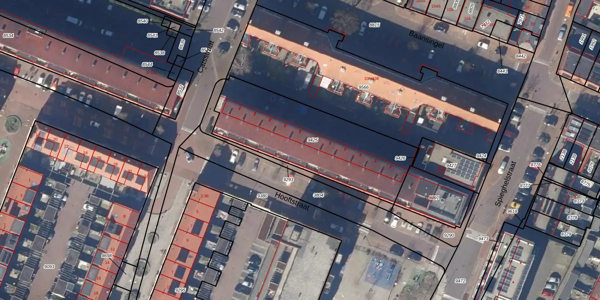 Het perceel waarop Hooftstraat 179 staat heeft een oppervlakte van 1368 m². Dit is een zeer groot perceel. De perceeloppervlakte wordt geregistreerd door het Kadaster. Gedetailleerde informatie over de maten van dit perceel kunt u vinden in het rapport Kadastrale kaart met maatvoering van Hooftstraat 179.