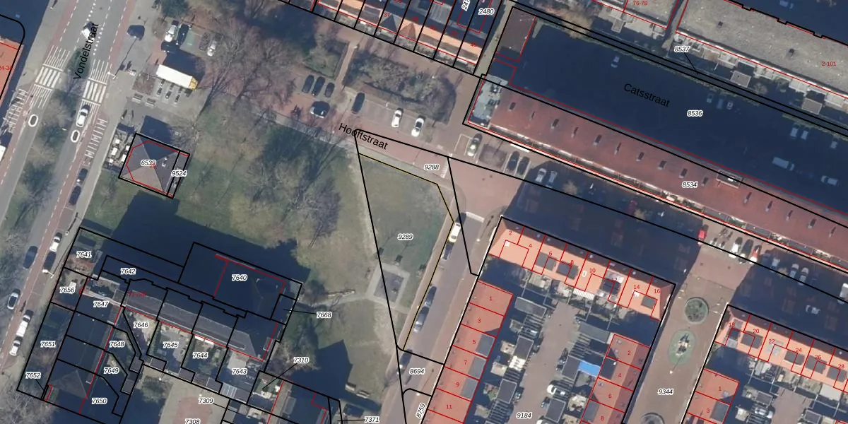 Het perceel waarop Hooftstraat 2-B-4 staat heeft een oppervlakte van 534 m². Dit is een groot perceel. De perceeloppervlakte wordt geregistreerd door het Kadaster. Gedetailleerde informatie over de maten van dit perceel kunt u vinden in het rapport Kadastrale kaart met maatvoering van Hooftstraat 2-B-4.