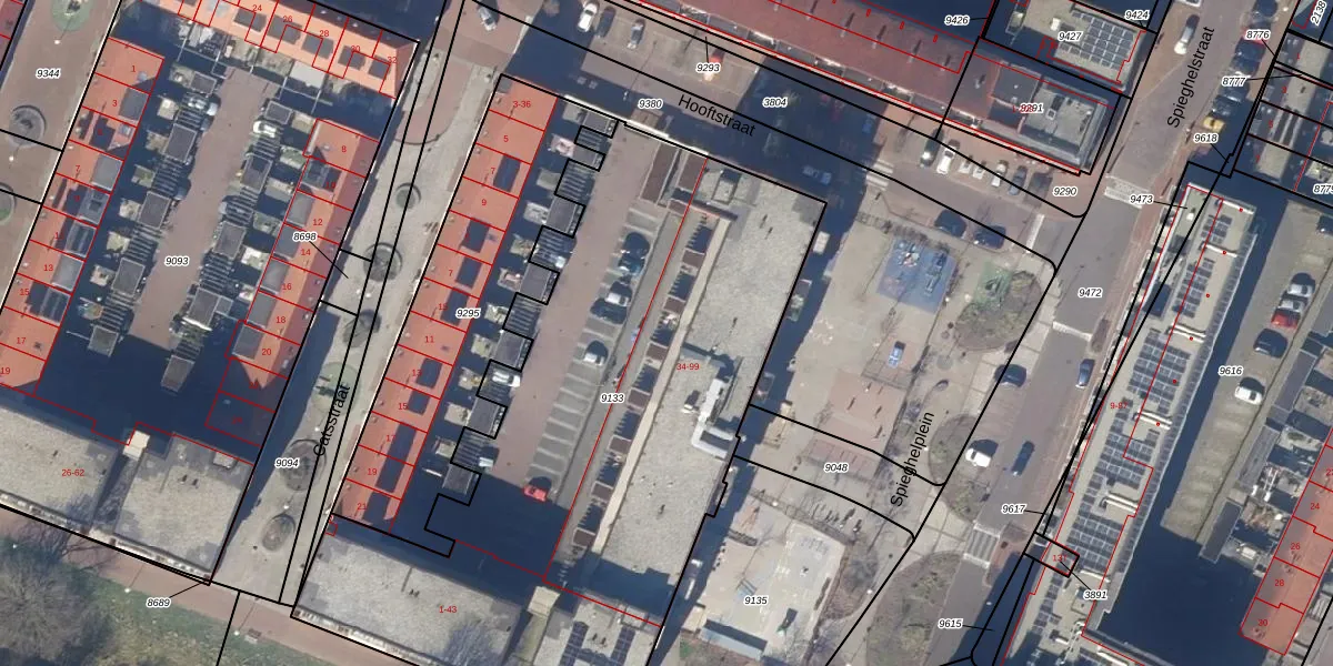 Het perceel waarop Hooftstraat 40 staat heeft een oppervlakte van 3435 m². Dit is een zeer groot perceel. De perceeloppervlakte wordt geregistreerd door het Kadaster. Gedetailleerde informatie over de maten van dit perceel kunt u vinden in het rapport Kadastrale kaart met maatvoering van Hooftstraat 40.