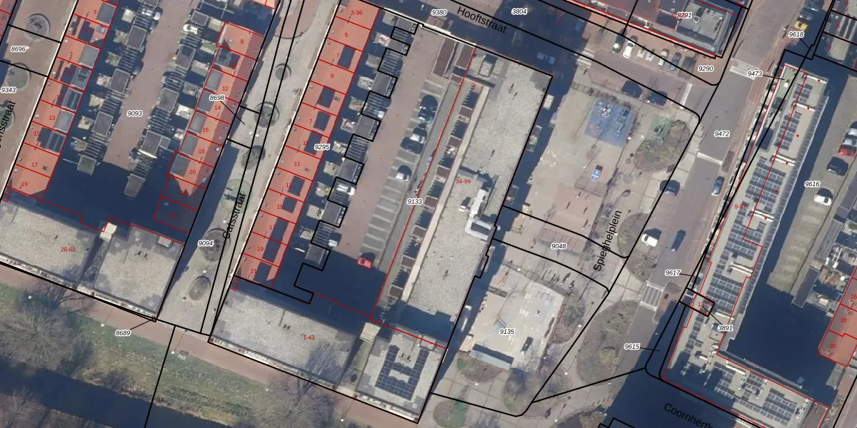 Het perceel waarop Hooftstraat 44 staat heeft een oppervlakte van 3435 m². Dit is een zeer groot perceel. De perceeloppervlakte wordt geregistreerd door het Kadaster. Gedetailleerde informatie over de maten van dit perceel kunt u vinden in het rapport Kadastrale kaart met maatvoering van Hooftstraat 44.