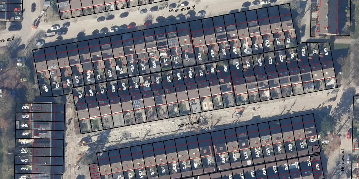 Het perceel waarop Hornwaard 134 staat heeft een oppervlakte van 163 m². Dit is een middelgroot perceel. De perceeloppervlakte wordt geregistreerd door het Kadaster. Gedetailleerde informatie over de maten van dit perceel kunt u vinden in het rapport Kadastrale kaart met maatvoering van Hornwaard 134.