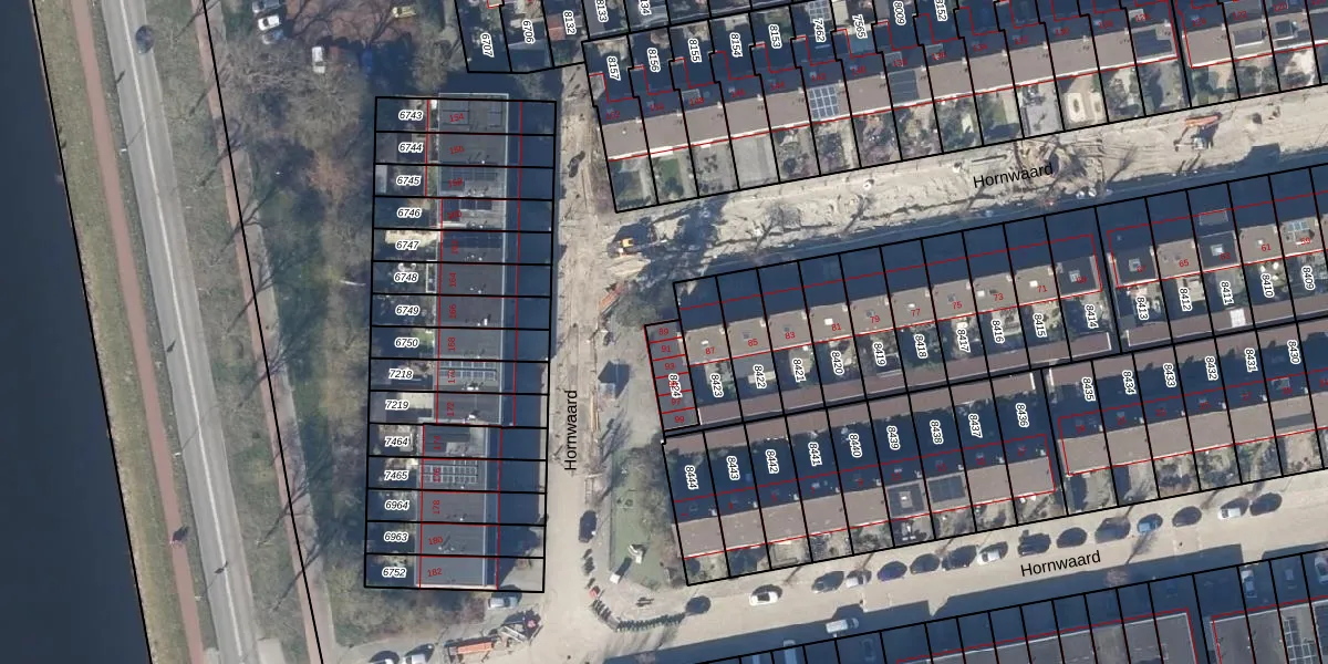 Het perceel waarop Hornwaard 89 staat heeft een oppervlakte van 89 m². Dit is een klein perceel. De perceeloppervlakte wordt geregistreerd door het Kadaster. Gedetailleerde informatie over de maten van dit perceel kunt u vinden in het rapport Kadastrale kaart met maatvoering van Hornwaard 89.