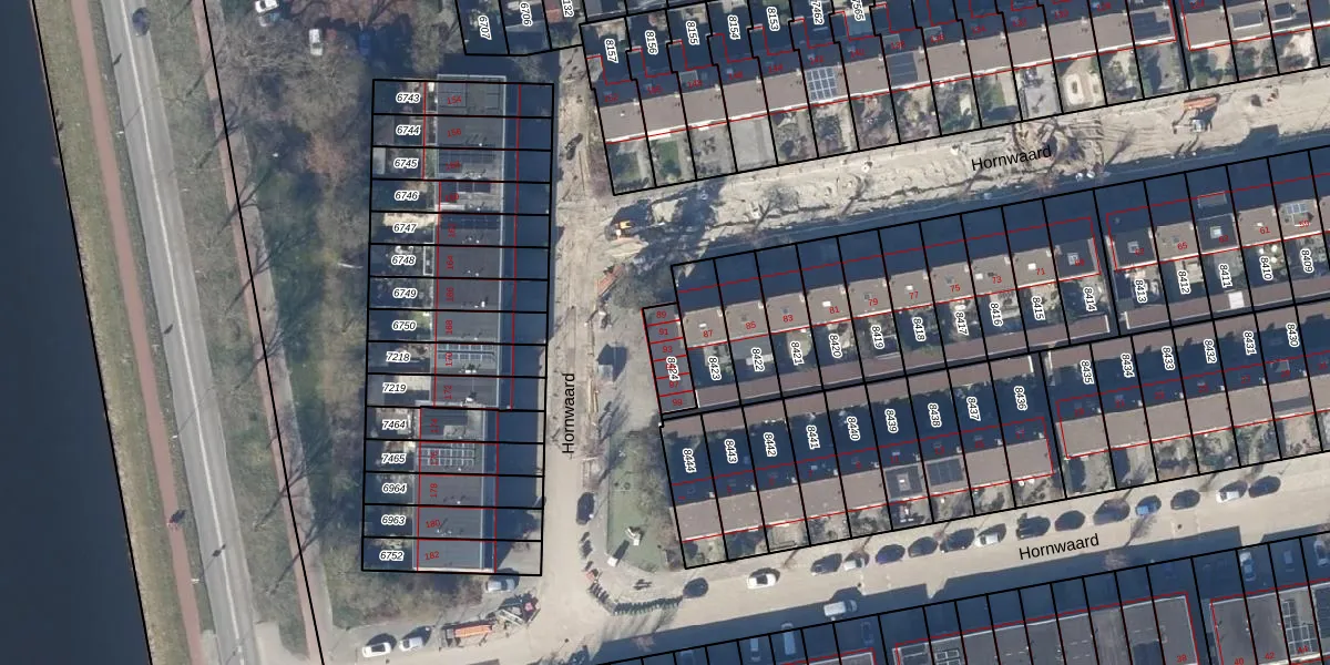 Het perceel waarop Hornwaard 91 staat heeft een oppervlakte van 89 m². Dit is een klein perceel. De perceeloppervlakte wordt geregistreerd door het Kadaster. Gedetailleerde informatie over de maten van dit perceel kunt u vinden in het rapport Kadastrale kaart met maatvoering van Hornwaard 91.