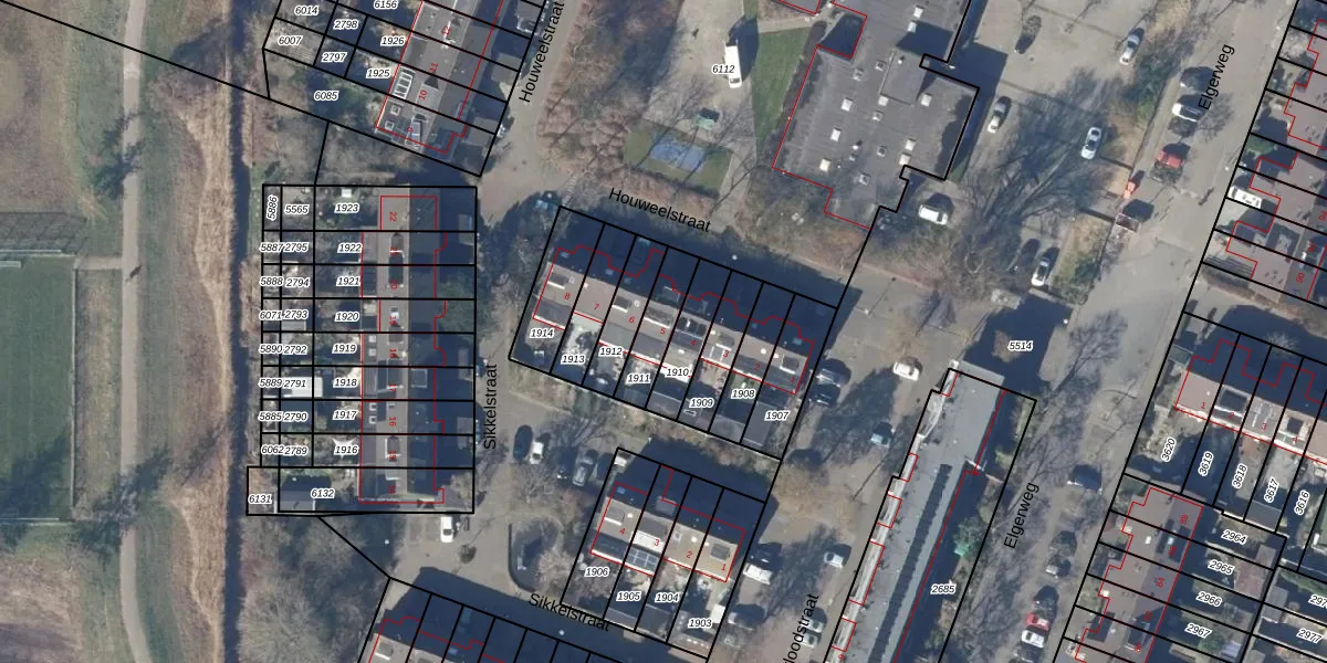 Gebruik de zoekbalk of klik op een perceel voor informatie over de adressen binnen dit perceel.