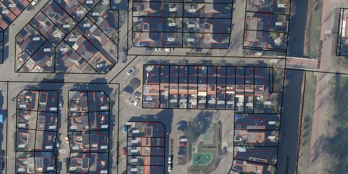 Gebruik de zoekbalk of klik op een perceel voor informatie over de adressen binnen dit perceel.