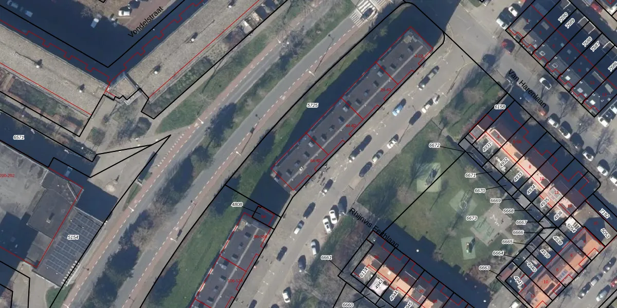 Het adres is gelegen op perceel 5725 in de sectie F en de kadastrale gemeente Alkmaar. De kadastrale aanduiding is aldus AMR01-F-5725. De oppervlakte van het perceel is 1625 m². Dat is groter dan gemiddeld in Alkmaar, waar de gemiddelde perceeloppervlakte op 816,94 m² ligt. De grootste perceeloppervlakte in de kadastrale gemeente is 28,3 ha. De kleinste oppervlakte bedraagt 0 m². Er zijn 40 adressen aanwezig op het perceel. In de Basisregistratie Kadaster (BRK) werden de grenzen van het perceel geregistreerd op 31-05-2010.