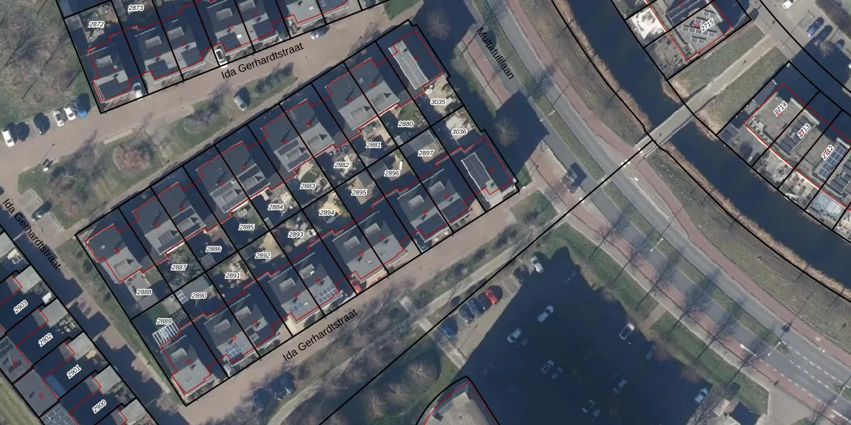 Gebruik de zoekbalk of klik op een perceel voor informatie over de adressen binnen dit perceel.