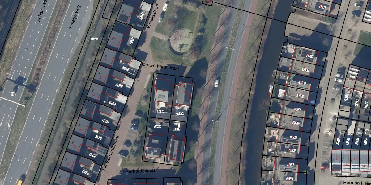 Gebruik de zoekbalk of klik op een perceel voor informatie over de adressen binnen dit perceel.