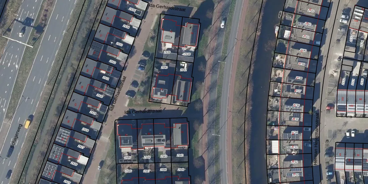 Gebruik de zoekbalk of klik op een perceel voor informatie over de adressen binnen dit perceel.