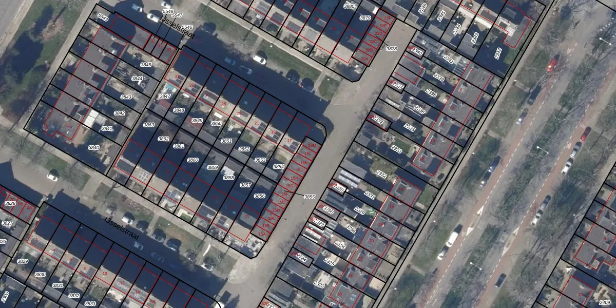 IJsselstraat 15-L is gelegen op kadastraal perceel ODP02A3855. Deze kadastrale aanduiding is uniek en wordt gebruikt door het Kadaster om eigendomsrechten en andere zakelijke rechten vast te leggen. Het perceel maakt onderdeel uit van de kadastrale gemeente Oudorp.