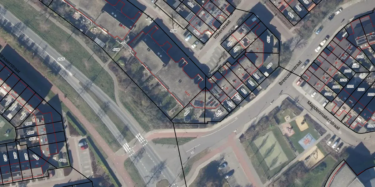 Het perceel waarop Imkerstraat 14 staat heeft een oppervlakte van 2671 m². Dit is een zeer groot perceel. De perceeloppervlakte wordt geregistreerd door het Kadaster. Gedetailleerde informatie over de maten van dit perceel kunt u vinden in het rapport Kadastrale kaart met maatvoering van Imkerstraat 14.