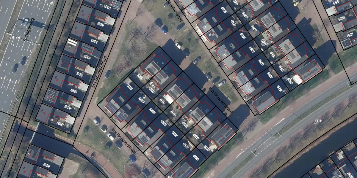 Het perceel waarop Ina Boudierstraat 5 staat heeft een oppervlakte van 216 m². Dit is een middelgroot perceel. De perceeloppervlakte wordt geregistreerd door het Kadaster. Gedetailleerde informatie over de maten van dit perceel kunt u vinden in het rapport Kadastrale kaart met maatvoering van Ina Boudierstraat 5.
