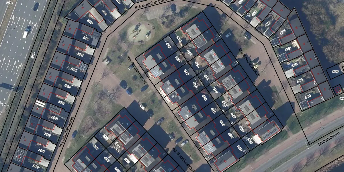 Het perceel waarop Ina Boudierstraat 54 staat heeft een oppervlakte van 216 m². Dit is een middelgroot perceel. De perceeloppervlakte wordt geregistreerd door het Kadaster. Gedetailleerde informatie over de maten van dit perceel kunt u vinden in het rapport Kadastrale kaart met maatvoering van Ina Boudierstraat 54.