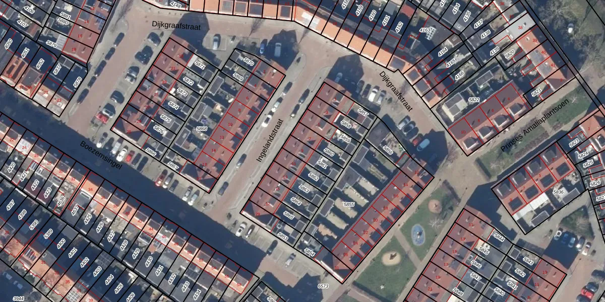 Het perceel waarop Ingelandstraat 9 staat heeft een oppervlakte van 108 m². Dit is een middelgroot perceel. De perceeloppervlakte wordt geregistreerd door het Kadaster. Gedetailleerde informatie over de maten van dit perceel kunt u vinden in het rapport Kadastrale kaart met maatvoering van Ingelandstraat 9.