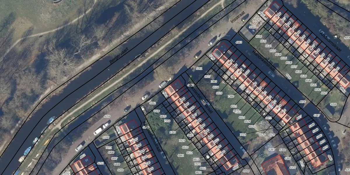 Gebruik de zoekbalk of klik op een perceel voor informatie over de adressen binnen dit perceel.