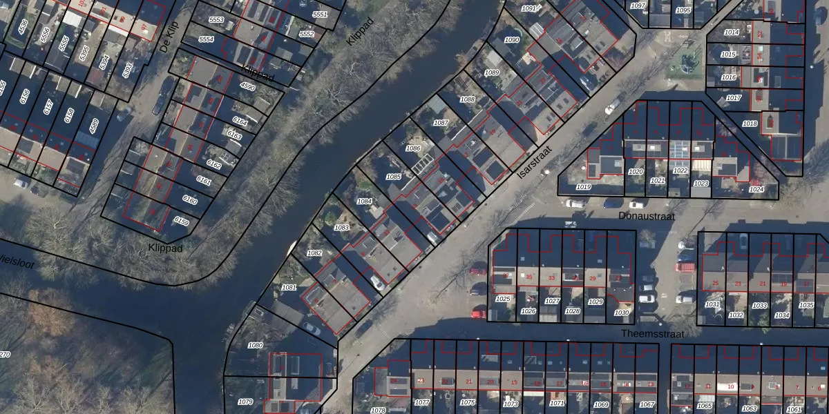 Gebruik de zoekbalk of klik op een perceel voor informatie over de adressen binnen dit perceel.