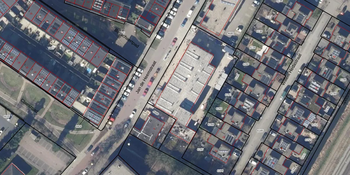 Het perceel waarop Jan de Heemstraat 5-L staat heeft een oppervlakte van 2110 m². Dit is een zeer groot perceel. De perceeloppervlakte wordt geregistreerd door het Kadaster. Gedetailleerde informatie over de maten van dit perceel kunt u vinden in het rapport Kadastrale kaart met maatvoering van Jan de Heemstraat 5-L.